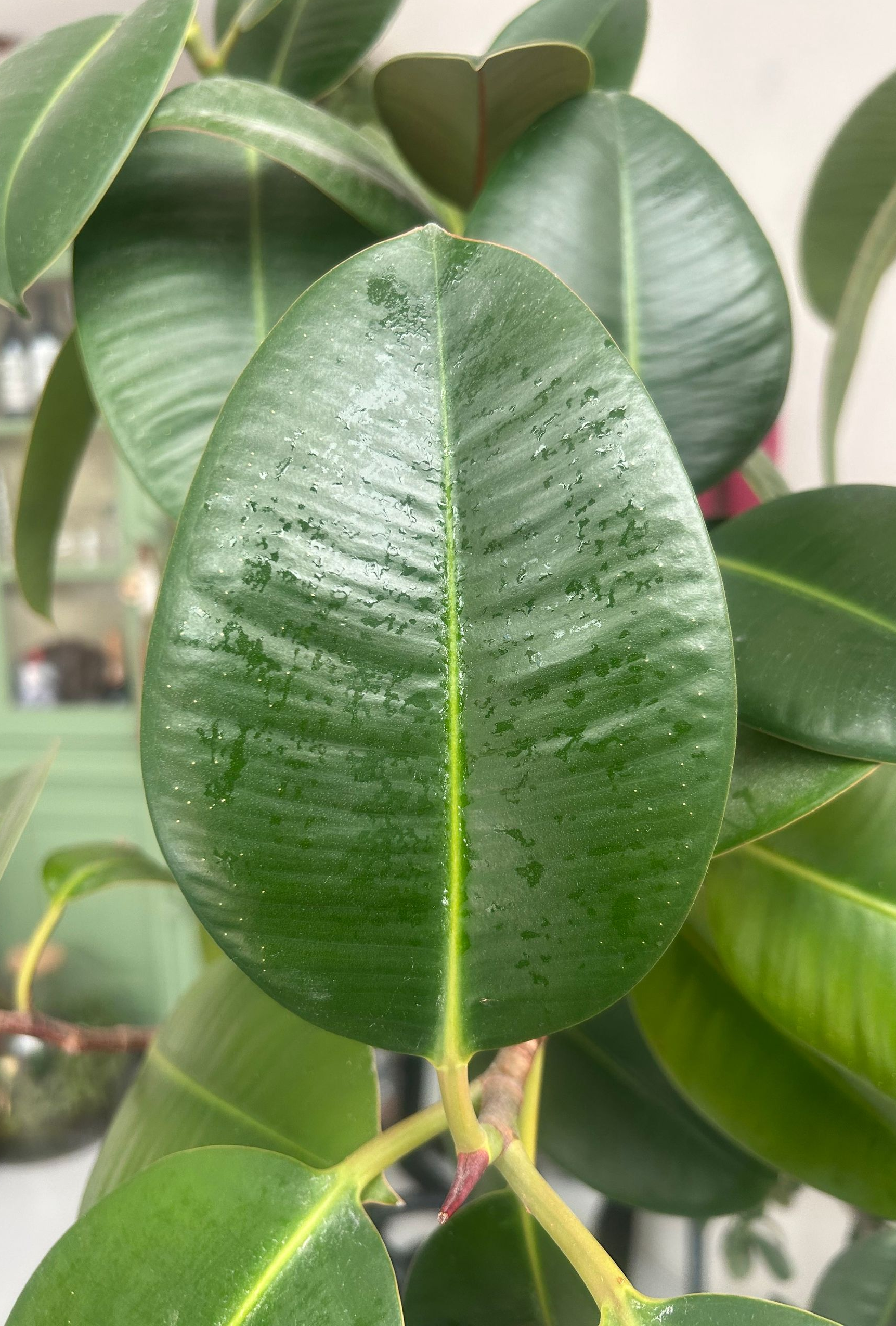 Wooohoooo we did it! Just look at the difference of these leaves! It even looks like the plant is smiling at us :) And a little tip, please don't fall for the trap of buying that make-your-plants-shine-hairspray-stuff, this seems an easy fix, but it will suffocate the leaves even more and will kill your plants eventually. Enjoy watching your shiny plants grow some new leaves soon!